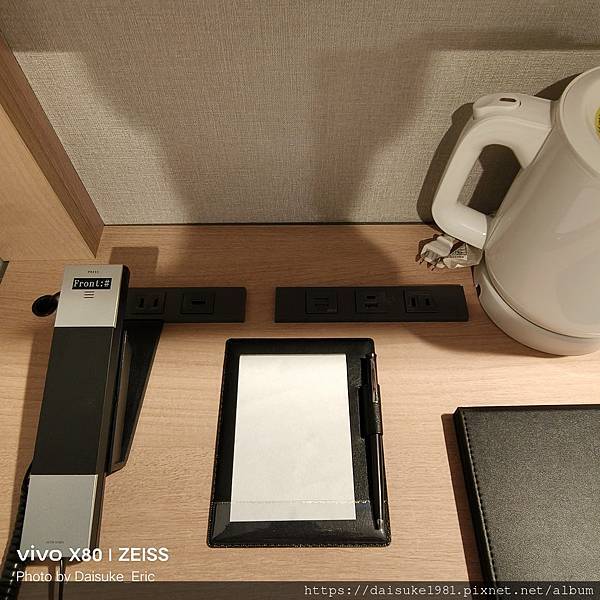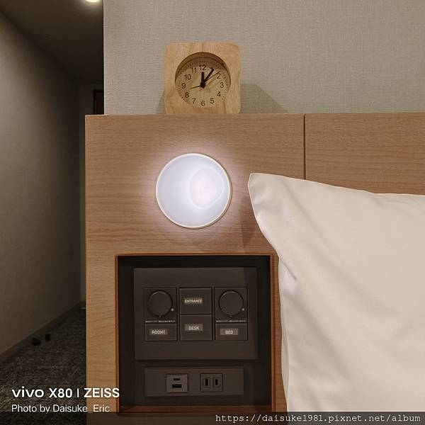 床頭櫃旁的燈控下有插座和 USB Type-C 插孔,即使忘了帶豆腐頭出門也是能幫手機充電。